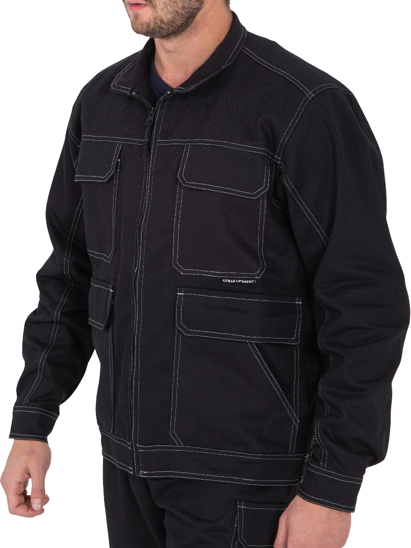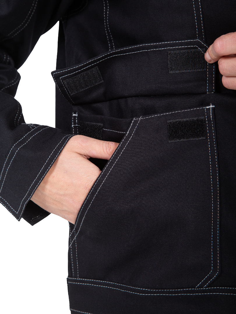 Качественный рабочий костюм (куртка + полукомбинезон) из 100% хлопка с скрытыми молниями, чтобы не царапать кузов автомобиля.