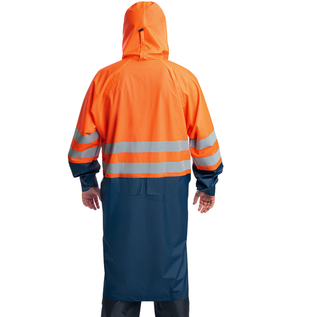 Плащ сигнальный повышенной видимости 3 класс защиты , для защиты от воды 3 кл. защиты, из материала с ПВХ покрытием, фонового материала флуоресцентного оранжевого, с ПВХ покрытием, с НМВО, К80, Щ40