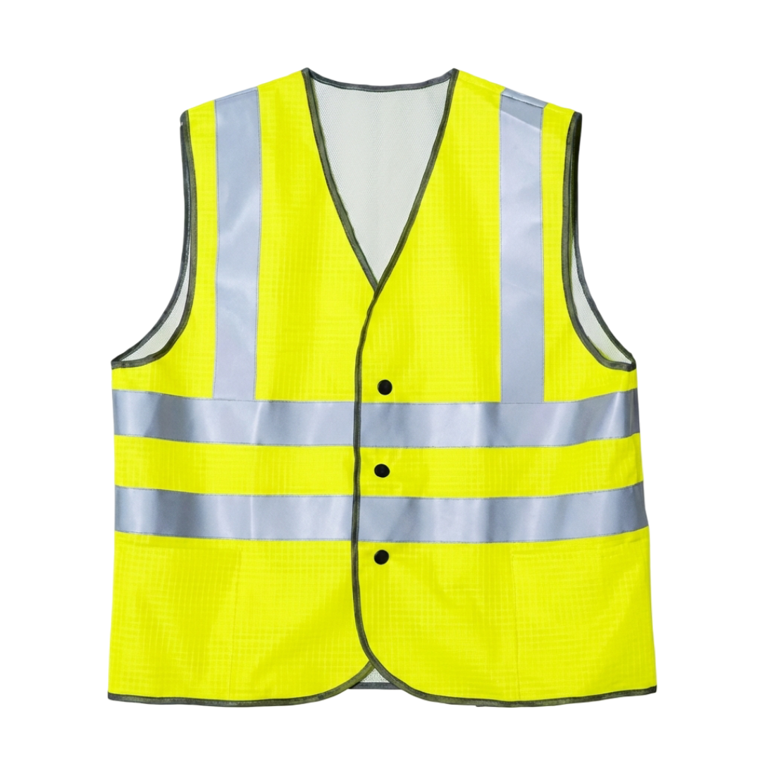 Изделие повышенной видимости 2-го класса защиты. Центральная застежка на пуговицы. Жилет прямого силуэта с глубоким вырезом горловины и пройм, центральная застежка на пуговицы. В нижней части полочек накладные боковые карманы, входящие в боковой шов и под окантовку. На спинке и на полочках настрочены в два ряда Световозвращающие полосы СОП 2 класса на расстоянии не менее 50 мм друг от друга, а вертикальные – от плечевых швов до горизонтальных полос. Все срезы жилета окантованы тесьмой.