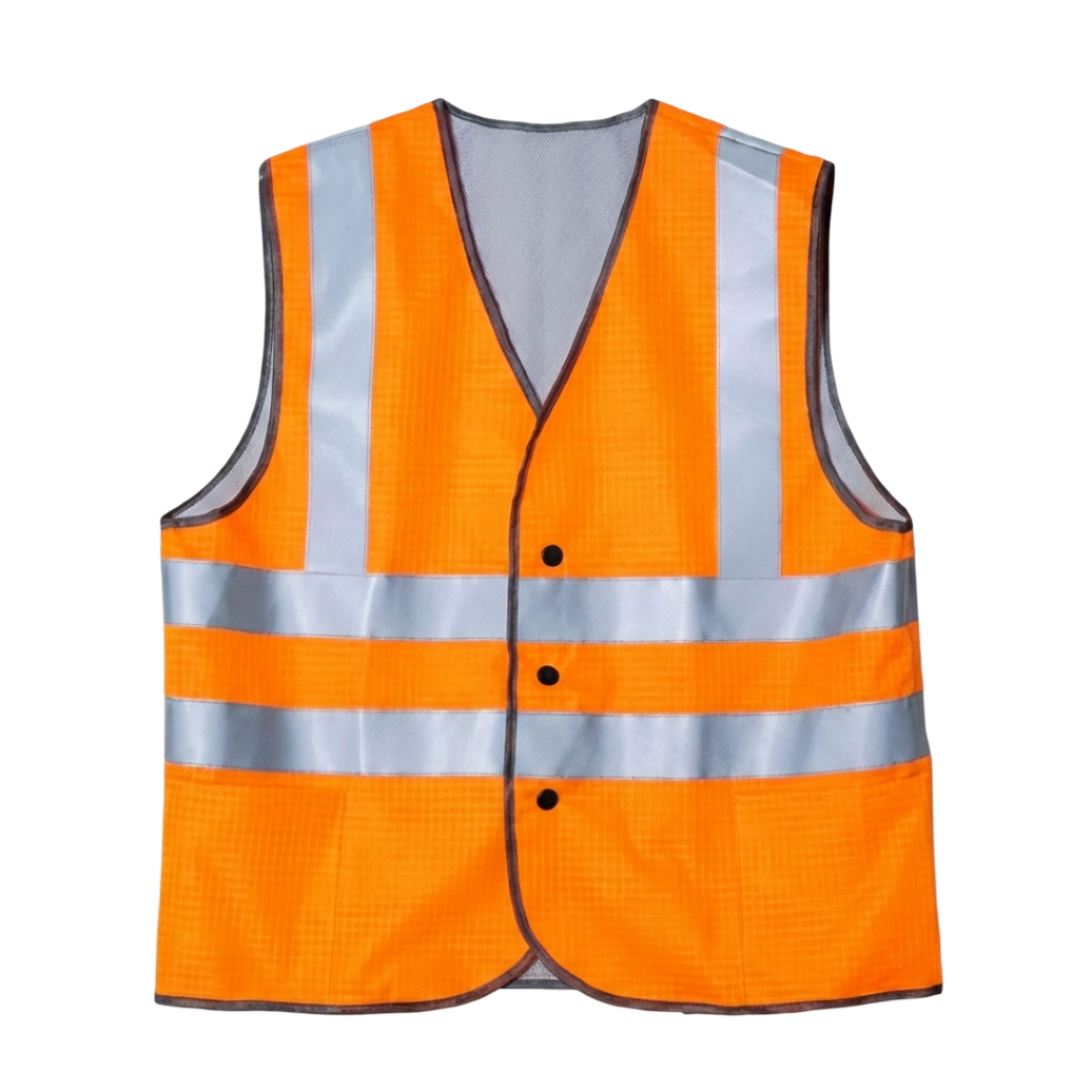 Изделие повышенной видимости 2-го класса защиты. Центральная застежка на пуговицы. Жилет прямого силуэта с глубоким вырезом горловины и пройм, центральная застежка на пуговицы. В нижней части полочек накладные боковые карманы, входящие в боковой шов и под окантовку. На спинке и на полочках настрочены в два ряда Световозвращающие полосы СОП 2 класса на расстоянии не менее 50 мм друг от друга, а вертикальные – от плечевых швов до горизонтальных полос. Все срезы жилета окантованы тесьмой.